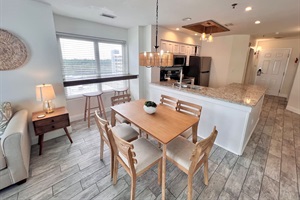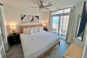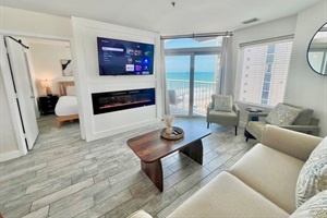 2 full size beds and a smart TV that swivels on the wall for best angle